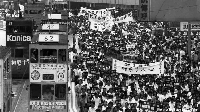 “반환을 앞두고 1989년 대륙의 톈안먼 사건 당시 ‘조국’의 젊은이들이 유혈진압되는 광경은, 정치는 역시 폭력적인 것임 을 느끼게 해주었다. 홍콩에는 정치와 폭력에 대한 극도의 반감이 뿌리 깊게 자리잡았다.”