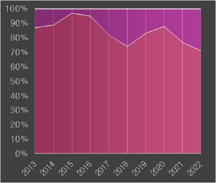 이번 에너지 위기가 닥치기 전인 2015년부터 2020년까지 국제 천연가스 가격이 낮았고 구매자 우위 시장이 조성되어 민자발전사들이 낮은 가격으로 직수입을 할 수 있는 여건이 마련되었다. 그 결과 2020년 대기업의 직수입 비중이 22%까지 증가했다. 하지만 최근 에너지 위기로 천연가스 가격이 높아지자 그 비중이 줄어들어 2022년에는 15% 정도로 낮아졌다. 그런데 에너지 위기로 민자발전사들이 직수입을 축소하자 가스공사의 단기(현물)계약 물량 수입이 늘어나게 되었다. 2021년부터 단기계약과 장기계약의 가격 차가 크게 벌어지면서, 비싼 단기계약을 확대할 수밖에 없었던 가스공사의 평균 수입가격이 더 많이 상승하게 되었다. 가스공사의 LNG 수입 물량 중 단기계약 비중이 최근 크게 늘어나 2022년에는 30%에 육박하는 수준에 달했다. 즉, 에너지 위기 국면에서 직수입 대기업의 이익 극대화 전략에 따라 가스공사의 LNG 구매 비용이 늘어나고 그 비용이 가스공사의 미수금으로 적립되고 있는 것이다.
