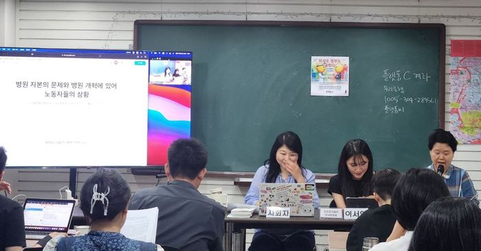 두 사람의 발제 이후 참가자들과의 질의응답이 이어졌다. 한 참가자는 "'지금과 같은 의료의 시장화 흐름 속에서 운동이 어떻게 함께 모여서 투쟁할 수 있을까'에 대한 고민을 나눠보고 싶다"고 했다.