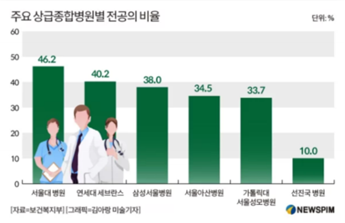 이 같은 현실에서 윤석열 정부는 ‘의료개혁’에 목소리를 높였다. 하지만 어떤 개혁을 할 것인지에 대한 얘기는 사라지고 의대 증원을 둘러싼 소모적 갈등만 계속되고 있다. 그리고 그 중심엔 파업에 나선 전공의들이 있다. 전문의가 되기 위해 4~5년 수련 과정을 거치는 의사를 전공의라고 부른다. 강도 높은 노동을 하는 전공의들은 대형병원일수록 그 의존율이 높아 거의 절반에 달한다. 건강보험평가원 자료를 보면 서울대병원, 연세대 세브란스 등 국내 대학병원 전공의 비율은 40%에 달한다. 반면 미국 메이요클리닉, 도쿄대 병원 등의 전공의 비율은 10%에 불과하다.전공의들이 병원 자본의 노동 착취를 견디는 까닭은 이후 전문의가 된 뒤 시장에서 누리는 자율성, 즉 경제적 우위 때문이다. 그런데 의대 증원은 그러한 경제적 우위에 직접적으로 영향을 미치는 일인 만큼 전공의들은 민감할 수밖에 없고 여기에 열악한 노동 환경으로 인한 불만이 겹치면서 전공의들이 파업을 선택한 것이다.