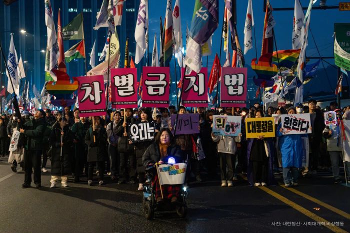 나를 비롯한 트랜스젠더와 성소수자, 그리고 많은 이들이 차별금지법을 전폭적으로 지지하는 이유는 우리의 삶을 위태롭게 만드는 혐오 세력과 사회적 차별에 있다. 평등한 사회에 대한 요구는 퇴진 광장 이후 지금까지도 사람들의 마음 1순위에 있다. 한국사회여론연구소의 2025년 8월 조사 결과에 따르면, 차별금지법 제정에 찬성하는 입장은 45.8%로, 법 제정에 반대한다는 31.4%보다 훨씬 높게 나타났다. 정부가 우리를 ‘민생’의 범주 밖으로 밀어내더라도, 평등을 향한 요구는 광장에서 이미 확인되었다. 혐오와 배제의 언어가 커질수록 우리는 더 넓게 손을 잡는다. 차별 없는 세상을 향한 연대는 결코 소수의 목소리가 아니며, 그 흐름은 앞으로도 계속 확장될 것이다.